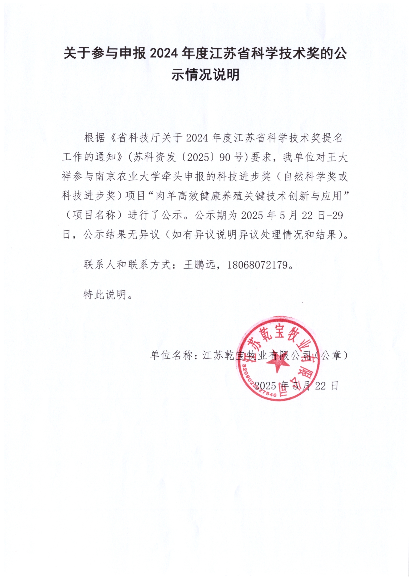 5月29日,江蘇省畜牧業(yè)協(xié)會在南京舉行成立大會,乾寶牧業(yè)公司董事長王躍程、總裁蔣柏林出席會議,乾寶牧業(yè)有限公司當(dāng)選江蘇省畜牧業(yè)協(xié)會首屆會長單位,王躍程董事長當(dāng)選為羊業(yè)分會會長。 ●大會會場王躍程董事長在座談會上發(fā)言,介紹了江蘇乾寶牧業(yè)公司發(fā)展情況,重點介紹了湖羊種質(zhì)資源保護利用取得的成就及今后的發(fā)展規(guī)劃,并表示將攜手全省羊業(yè)企業(yè),進一步做好我省羊業(yè)種質(zhì)資源保護、育繁和飼養(yǎng)工作,堅決打好江蘇羊業(yè)發(fā)展...